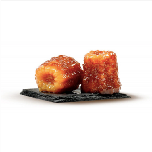 Laissez-vous séduire par ces délicieux mini canelés, au cœur fondant et à la texture caramélisée, lentement pochés dans un sirop délicatement parfumé au rhum et à la vanille. Une douceur authentique et réconfortante, parfaite pour accompagner un café gourmand, une pause sucrée ou une envie de dessert improvisée.